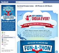 Digital News Report – Carnival has reached a milestone of getting 1 million users to like their Facebook page. Carnival Cruise Lines held a contest that will be ending on July 5, 2011. This sweepstakes got them 300,000 Facebook ‘likes’ in the last two months alone.
