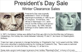 Not everyone takes a holiday on President’s Day. Like Veterans Day and Columbus Day, many retailers offer special sales. The Post Offices are closed, however other delivery company’s, including Federal Express and United Parcel Service (UPS), will be open.