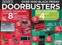 Sears Thanksgiving Day doorbusters (between 8 pm through Friday at 1 pm) include electronics, clothing, and appliances. Sears is offering a 32” HDTV for only $97. A Proscan DVD player is only $9.99. 2 ct. tw. Of diamond jewelry is $99.99 each piece.
